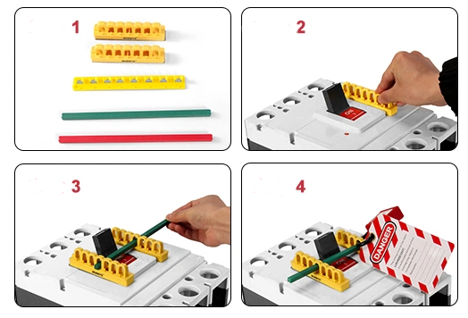 Çubuk Şalter Kilitleme Ekipmanı (480-600V) Ürün Kodu: LP-D22-1 WhatsApp Sipariş Genel Bakış Diğer Özellikler Plastik alaşım malzemeden üretilmiştir. Çubuk boyu :192 mm. 7 mm delik çapına kadar asma kilit uyumludur. Özel büyüklükte veya benzersiz şekillerdeki anahtarlarda uygulanır. Kendinden yapışkanlı parça şaltere sabitlenir. Yapışkanlı oluşundan dolayı tak çıkar yapılabilir. Kırmızı durdurma çubuğu anahtarın kapalı durumda olduğu anlamına gelir, yeşil durdurma çubuğu anahtarın açık durumda olduğu anlamına gelir.