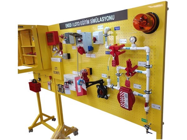 Eked/Loto Eğitim Simülatörü Ürün Kodu: LP-PN160 WhatsApp Sipariş Genel Bakış Diğer Özellikler Sıvı akışkan bir sistem bulunmakta ve sistem 12v ile çalışmaktadır. Kompakt şalter ve otomatik sigortaların çalıştırdığı kısım vardır ve elektriksel olarak birbirine bağlıdır. Enerji altında kilitleme etiketleme ürünlerinin denenmesi amacı ile birçok enerji noktasından oluşmaktadır. Her enerji noktası aktif değildir fakat üzerinde kilitleme yapılabilir. Manometresi aktiftir.Böylece depolanmış enerji aktif olarak görülmektedir. Paslanmaz boya koruyuculu çelikten üretilmiştir. Genel Boyut : 1850mm Yükseklik x 1000mm Genişlik Pano Boyutu: Genişlik 1600 mm x 900 mm Yükseklik Özel ölçüde tasarlanabilir. Demonte edip istediğiniz alana kolayca taşıyabilirisiniz.Tekrardan kurulumu kolaydır. 4 tekerlekten oluşmaktadır. Ön 2 tekerlek frenlidir. Loto ürünleri dahil değildir. Çift kapaklı ayaklı loto istasyonu isteğe bağlı alınabilir. İsteğe göre simülatör üzerine de loto istasyonu asılabilir.